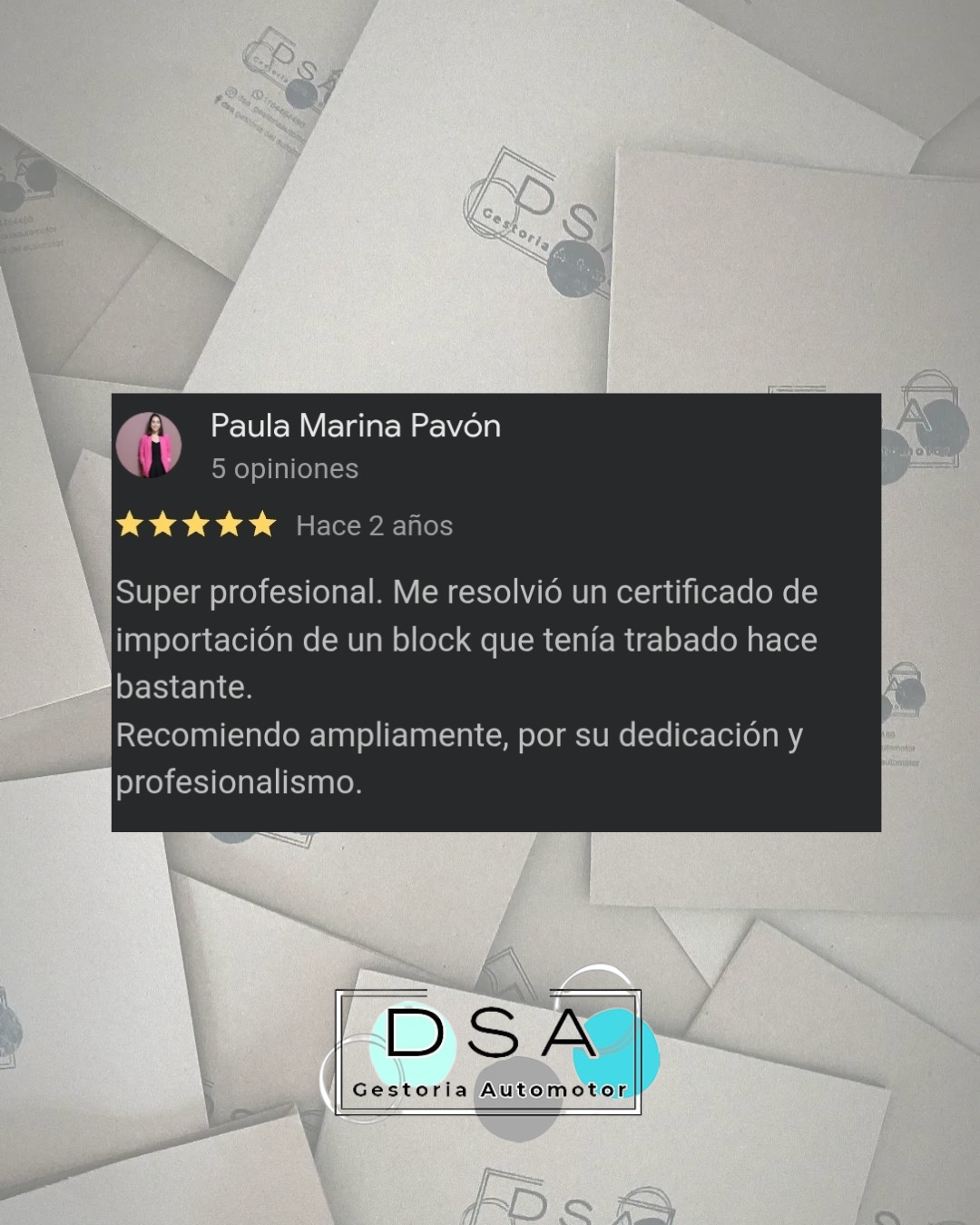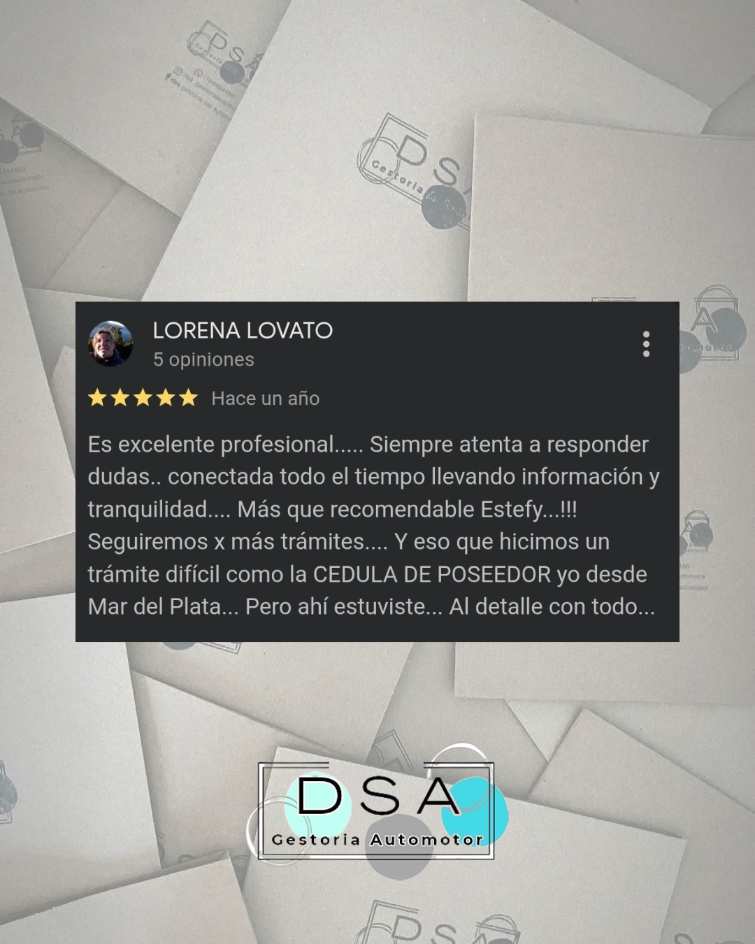 Con los años empecé a trabajar de manera particular y, hace 8 años, decidí crear DSA Gestoría Automotor. Más adelante, a partir de las propias consultas de mis clientes, me capacité también como Gestora Náutica, porque entendí que el acompañamiento no termina en un auto: sigue en todo lo que forma parte de tu vida y tus decisiones.